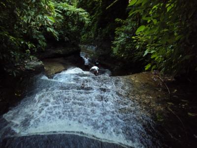 সামনে অগ্রসর হলাম। উপর থেকে প্রচন্ড বেগে পানি নেমে আসতেছে। এই বেগ ঠেলে পানি বরাবরই হাঁটতে হয়। ডানে বায়ে যেখানে পানির স্রোত কম সেখানে শ্যাওলা জমেছে। একটুতেই পা পিছলে যায়।