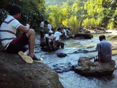 ছড়া পাড় হয়ে সবাই একটু রেস্টে আছে। প্লানও করা হচ্ছে কি করা যায়। কারণ এতক্ষণে প্রায় তিন কিলোমিটার পথ পেরিয়ে এসেছি। সূর্যের ক্ষরতাপে আলুসিদ্ধ হয়ে পড়েছি যেন। পাহাড়ি এলাকায় রোদের তাপটা যেন একটু বেশীই লাগে।