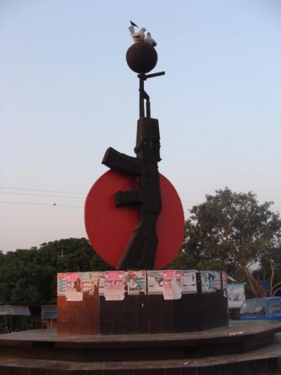 নবাবগঞ্জ শহরে অবস্থিত, মহানন্দা নদীর উপর নির্মিত বীরশ্রেষ্ট ক্যাপ্টেন মহিদ্দীন জাহাঙ্গীর সেতু চত্বরের ভাস্কর্য