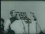 ১৯৫২ সালে আমরা রক্ত দিয়েছি। ১৯৫৪ সালে নির্বাচনে জয় লাভ করেও ক্ষমতায় বসতে পারিনি। ১৯৫৮ সালে দেশে সামরিক শাসন জারি করে আইয়ুব খান দশ বছর আমাদের গোলাম করে রাখলো। ১৯৬৬ সালে ৬-দফা দেয়া হলো এবং এর পর এ অপরাধে আমার বহু ভাইকে হত্যা করা হলো। ১৯৬৯ সালে গণ-আন্দোলনের মুখে আইয়ুবের পতনের পর ইয়াহিয়া খান এলেন। তিনি বলেলেন, তিনি জনগণের হাতে ক্ষমতা ফিরিয়ে দেবেন, শাসনতন্ত্র দেবেন, আমরা মেনে নিলাম।