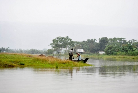 ভাড়া মিটিয়ে চলে এলাম স্থানীয় এক হোটেলে। কি আছে জিজ্ঞাসা করতে হাসি মুখে হোটেল মালিক জানালো কাচ্চি বিরিয়ানি আছে। বাহ! ভালই তো। কি খাবে জিজ্ঞাসা করতে মোটামুটি সবাই কাচ্চিই খেতে চাইল। আগেই বলে দিয়েছি দুপুরে কোথায় এবং কি খাওয়া হবে তার কোন ঠিক নাই। এই ভেবেই সাবই একটু ভারি খাবার খেয়ে নিতে চায়। একটু পরেই হাজির হল কাচ্চি। কিন্তু একি ! এটা যদি কাচ্চি হয়, তাহলে তেহেরি কোনটা? আর এটা যদি তেহেরিই হয়, তাহলে মাংস কোথায়? এটা যদি কোন ঝোলের তরকারি হত, তবে মাংস খুজতে নাহয় ডুবুরী নামাতে পারতাম। কিন্তু এই ঝরঝরা কাচ্চিতে(!) মাংস খুজতে আমি মরুভূমির বেদুইন পাই কোথায়? ভাবলাম যা আছে তাই দিয়ে কাজ সারতে হবে কিন্তু সাথে একটা করে ডিম ভেজে নিলেই তো আর ঝামেলা থাকে না। হোটেলের মালিক মহোদয়কে ডিম ভাজতে বললাম। কিন্তু হায়! উনার কাছে ডিম যে নাই। আর এই সাত-সকালে অন্যান্য দোকান পাটও খুলেনি। অগত্যা নিজেই বের হলাম ডিমের সন্ধানে। ডিম আজকে আমরা খাবই। দরকার হলে মুরগির হাতে পায়ে ধরে ডিম পারয়ে নিব। যা হোক ডিম যোগাড় করে ফিরে এসে দেখি সবাই মোটামুটি খাওয়া শেষ করে চা নিয়ে বসে আছে। মনের দুঃখে ডিমগুলোর দিকে তাকিয়ে মনে মনে বললাম, যার জন্য ডিম পাড়ি, সেই খায় চা। তবে শেষ পর্যন্ত চারটা ডিম উদরস্থ করে আমি আর জামাল কোরেশী ভাই চলে এলাম ঘাটে। নৌকা ঠিক করে উঠে পরলাম । আমাদের প্রথম গন্তব্য বিছানাকান্দী।