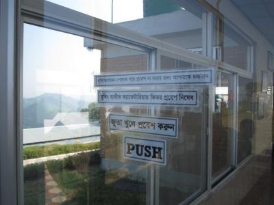 ক্যাফেটেরিয়া'র দরজা। জানতাম, লুঙ্গি নাকি আমাদের জাতীয় পোষাক। এমন দেশটি কোথাও খুঁজে পাবে না কো তুমি!