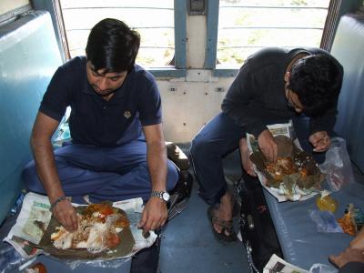 দুপুরে খাইলাম সাউথ ইন্ডিয়ান ভাত তরকারী। বহু কষ্টে গিলে ফেললাম।এরপর একে একে সবই খাইছি। ভাল লাগছে সব স্টেশনে ফ্রেস জুস পাওয়া যায়। ট্রেন থামলেই জুসের দোকানে দৌড় দিতাম। ২য় দিন সকালে এক স্টেশনে পাউরুটি ডিম দেখে সবাই পাগল হইয়া গেছিলাম। ট্রেন হর্ন না দিলে দোকানির সব রুটি ডিম শেষ হইয়া যাইত। ৪২ ঘন্টায় কোন হকাররেই ফিরায়া দিই নাই। আঙ্গুর আর মিষ্টি বড়ই ছিল সব সময়।
