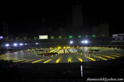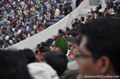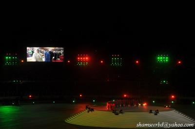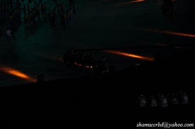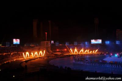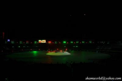 আমার অবশ্য ওপেনিং দেখার কোন চান্স ছিলনা। অফিসে যাবার সময় সাথে করে ক্যামেরা নিয়ে গিয়েছিলাম মাঠের আশে পাশে যাব এই ভেবে যে যদি আতশবাজির ছবি তোলা যায়। বারটার দিকে আজাদ ভাই ফোন করে বললেন শোন আমার কাছে একটা টিকেট আছে তুমি বাসায় এসে নিয়ে যাও। আমিত মহাখুশি, না চাইতেই এটা কি পেয়ে গেলাম। কিছুক্ষন পরে ফোন দিয়ে বললেন একটা মিস আন্ডারস্ট্যান্ডিং হয়ে গেছে- আমাকে আমার ভাই ফোন দিয়ে বলেছে টিকেট আছে একটা, আমিত শুনছি আটটা । ভাই বারবার সরি বললেন, আর আমি বললাম ব্যাপারনা..........