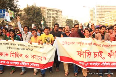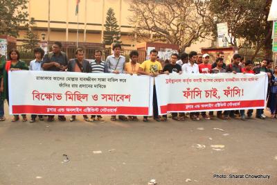 আমাদের দাবী, "রাজাকারের ফাঁসি চাই"। মুক্তিযুদ্ধের বিরোধী শক্তির সাথে কোন আঁতাত মেনে নেয়া হবে না।