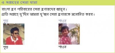 আমি এ সপ্তাহের সেরা ব্লগারদের নাম উপস্থাপন করছি ।
