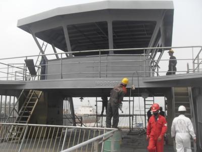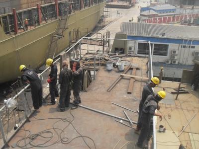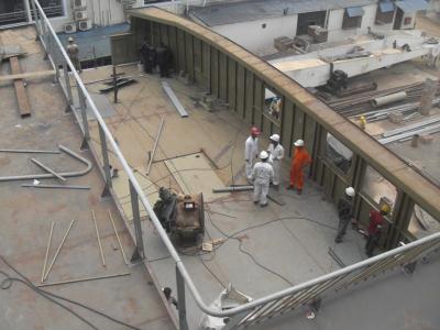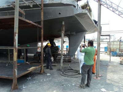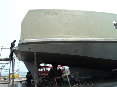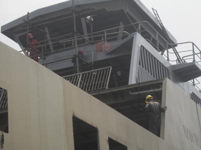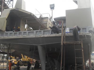 ফেরীটির পিছনের অংশের কাজ হচ্ছে