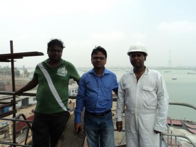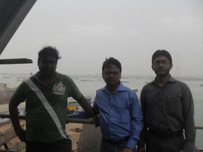ফেরীটির সবচেয়ে উচু স্থানে আমি , ব্লগার নীরব দর্শক এবং ফেরিটির ইনচার্জ।