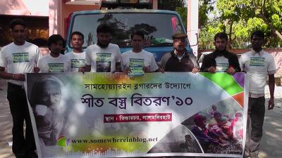 সকল ব্লগার ভাই ও বোনদের অত্যন্ত আনন্দের সাথে জানাচ্ছি যে, সামহোয়্যার ইন ব্লগারদের উদ্যোগে উত্তরবঙ্গে"শীতবস্ত্র বিতরণ কার্যক্রম'১০"। আপনাদের সকলের ঐকান্তিক সাহায্য সহযোগিতা, শুভকামনা, ভালোবাসা ও দোয়ায় এই কার্যক্রম সফল হয়েছে। আমরা লালমনিরহাট এর রাজাপুর ও সদরে প্রায় ৫০০ দুঃস্থ পরিবারকে শীত বস্ত্র বিতরন করেছি।