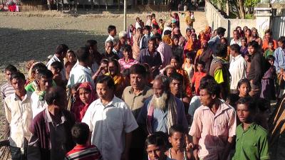 একটি মন্দির সংলগ্ন দেয়াল ঘেরা জায়গায় স্লিপ প্রাপ্ত লোকজনকে লাইন ধরে বসানো হল।