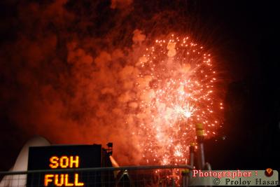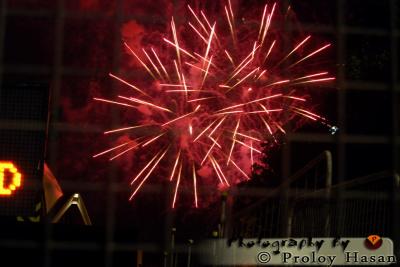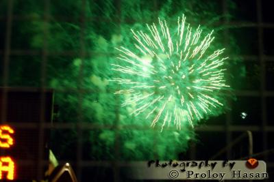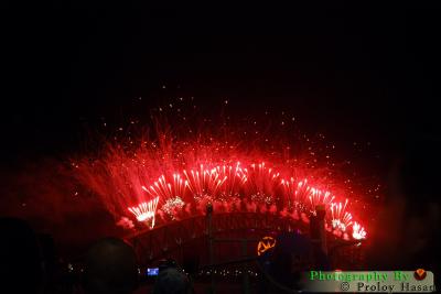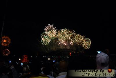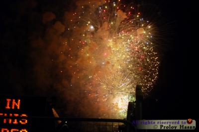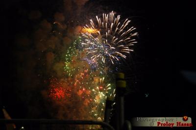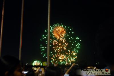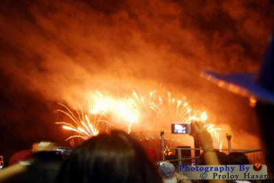 শো শুরু হলো সাড়ে নয়টায়। আকাশ ছেয়ে গেল আতশবাজীতে। আর সে শব্দে বাতাস ভারী হয়ে গেল। একেকবার পুরো আকাশ দিনের বেলার মত আলোকিত হয়ে যাচ্ছিল। এরপর সব ধোয়া। আমি কি করবো বুঝতে পারছিলাম না। ভিডিও করবো নাকি ছবি তুলবো। শেষে দুটোকেই কোনমতে ধরে নিলাম কিছু শট। পরে পিসিতে দেখি খারাপ আসেনি।