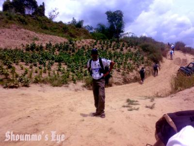 সদর ঘাটে সাঙ্গু পেরিয়ে হাটা শুরু করলাম। এই সুদর্শন ব্যাক্তিটি, আমি। হি হি হি।