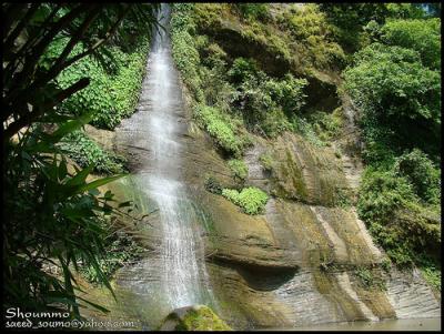 শ্যাওলা ধরা রহস্যময়ী অরণ্যের পাথুরে বিছানা ভেদ করে নামছে জলস্রোত।