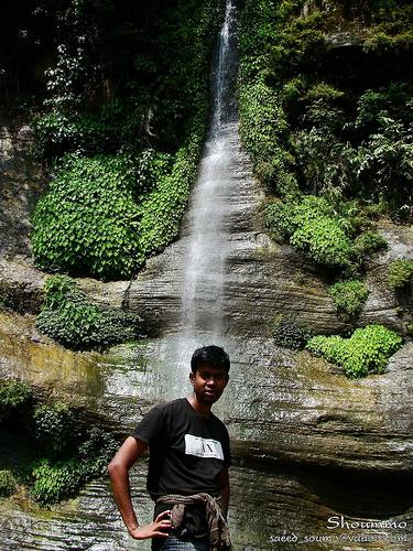 ঝর্নার সামনে দাঁড়ায় স্টাইল মারতেছি।