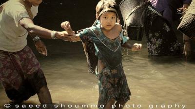 মুরং (ম্রো) মেয়েরা মাছ ধরছে রেমাক্রি'তে