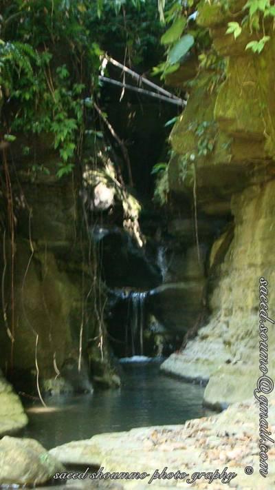 কিছুটা পথ আকা বাঁকা হেটে আমরা হঠাত ধপ করে নেমে গেলাম একটা ঝিরিতে। চারপাশে প্রচুর পাথর আর তার মাঝে একচিলতে ঠান্ডা পানি টলটল করে বয়ে যাচ্ছে। আসে পাশে জঙ্গল এত ঘন যে দিনমানেই অন্ধকার। ভেজা স্যাত স্যাতে পরিবেশ। জোঁকের আদর্শ পরিবেশ। ডিসেম্বরে জোঁক আর সাপ থাকেনা, অথচ ঝিরিতে ঢুকতে না ঢুকতেই অনেকগুলো জোঁক ছ্যাকা দিয়ে ফেলতে হলো গা থেকে। প্রচুর বুনো জন্তুর পানি খাবার জায়গা এটা বুঝতে দেরী হলো না। তাছাড়া আসে পাশে প্রচুর হরীনের ফাঁদ গ্রামের লোকেরা ফিট করেছে।