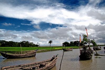 বিকেল বেলায় আমরা বেরুলাম। কর্দমাক্ত রাস্তা। ব্রীজ-ট্রিজের কোন বালাই নেই। গ্রামের মধ্য দিয়ে রাস্তা, একটু পর পরই খাল পড়ছে, আর তার উপরে পায়ের জন্যে একটা বাঁশ আর হাতে ধরার জন্যে একটা বাঁশ এমন সব ব্রীজ। আশেপাশে দিগন্ত জোড়া খোলা মাঠ। দূরে বেলাভূমি থেকে উত্তাল হাওয়া বারবার সবকিছু এলোমেলো করে দেয়।
