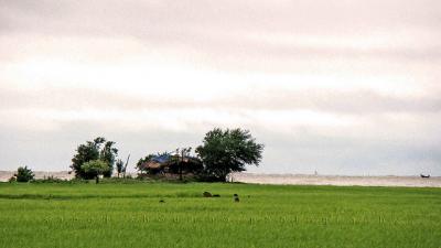 মেঘনা পাড়ের বাড়ী। আমাদের ক্যাম্প থেকে দেখা সবচে' পরিচিত দৃশ্য।