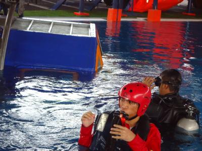 সবাই জানি এটা training এবং আমাদের চারপাশে instructor রা অ্যাকুয়ালাং পরে পানির নীচে আমাদের লহ্ম্য করছে, তারপরও সবার চোখমুখ এ নগ্ন আতংক প্রকাশ পেল। ডুবে যাচ্ছে helicopter, তারপর হঠাৎ করে পুরো model টা up side down হয়ে গেল। এবং পুরোটাই হল পানির নীচে ডুবন্ত অবস্থায়, chief instructor এর ঈঙ্গিত পেলাম পানির নীচে সবাই বের হও। ওই up side down অবস্থায় ই পানির নীচে প্রথমে sit belt খুললাম তারপর কাচের জানালা ভেঙ্গে life jacket এর মধ্যে যে অ্যাকুয়ালাং আছে সেটা মুখে দিয়ে বের হয়ে আসলাম।