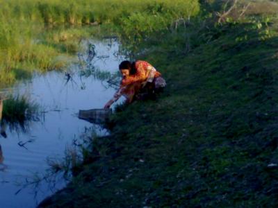 কাদার বাঁধন গাঁথি মাঝামাঝি জল সেঁচে আগে ভাগে