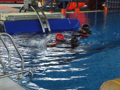 ইন্সট্রাকটর পানিতে ভেসে আছে।