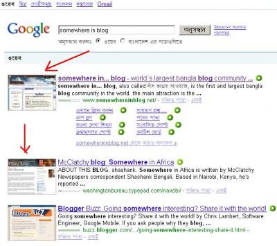 গুগলে সার্চ মারলে এত্তগুলা ওয়েব পেজ আসে। সবগুলায় ঢুইকা দেখা অনেকসময় বেসম্ভব, সময়েরও ব্যাপার। যদি সার্চের পাশেই ঐ পেজটার প্রিভিউ হিসাবে থাম্বনেইল ভিউ দেখা যায়? ওকে, তাইলে এইটা ইন্সটল করেন।