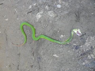 সাপটার নাম চেরেক......... আমাদের সাথে চলা একটা বম পরিবারের কর্তাবাবুটি জানালেন, বিষাক্ত সাপ। কে যেন একটু আগেই থেতলে দিয়ে গেছে............ এখনো লেজ নাড়াচ্ছে বেচারা !!!