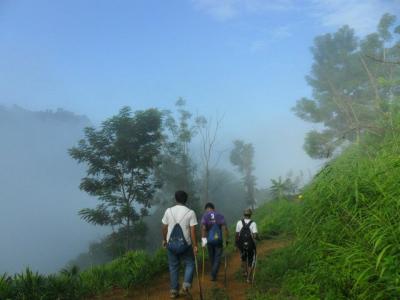 ধোয়াটে মেঘের মধ্য দিয়ে ট্রেকিং - ফিরতি যাত্রা শুরু। সময়ের বড়ই টানাটানি, এযাত্রা জাদিপাই ঝর্ণা না দেখেই ফিরতে হচ্ছে।