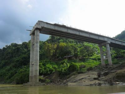 ফেরার সময় সাঙ্গু নদী - এই ব্রীজটা এরশাদের আমল থেকেই নাকি এভাবে দাঁড়িয়ে আছে, আর এর কারণ নাকি পাহাড়িরা !!! ওরা চায় না ব্রীজ হোক, তাহলে যোগাযোগ ব্যবস্থা ভালো হয়ে যাবে, আর বাঙ্গালী সেটেলাররা আস্তানা গেড়ে বসবে পাহাড়ে। তাদের এই আশঙ্কা নেহায়েত মিথ্যা নয় !