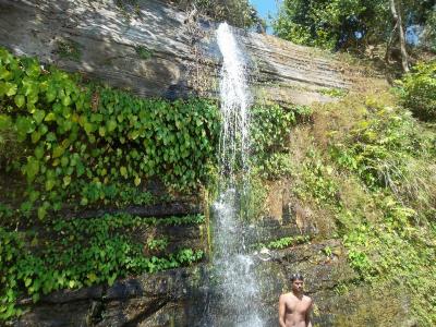 সময় নষ্ট করে লাভ নেই, দ্রুত এইবার রিসাং ঝর্ণার দিকে। মেইন রোড থেকে কিঃমিঃ দুয়েক ভেতরে ঢুকে খাড়া পাহাড় বেয়ে নামা। কিছুদূর গিয়ে সিড়িও পাওয়া গেল...... নেমে গিয়ে পাওয়া গেল রিসাং ঝর্ণা। অবশ্য শীতের শেষ, বসন্তের শুরুতে ঝর্ণায় পানি খুব কম......... যে জায়গাটা দিয়ে পানি বয়ে যাচ্ছে, প্রায় ৬০ ডিগ্রী খাড়া ঢাল আর অসম্ভব পিচ্ছিল। মানুষজন স্লিপারের মত স্লিপ কেটে যাচ্ছে সমানে, যার অবশ্যম্ভাবী ফলাফল আমরা আমাদের চারপাশেই দেখছি...... অসংখ্য তলা ফাটা জিন্স ! কারা যেন একেবারে ঝর্নার গোড়ায় কাঠকয়লা দিয়ে পিকনিকের রান্না করে গেছে......... আমরা বাঙ্গালীরা কোন জায়গা পেলে সেটাকে পচিয়ে দিতে খুবই সুদক্ষ।