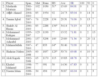 আরেকটি বিষয়- এই তালিকাটি ফেব্রুয়ারী ২০১০ পর্যন্ত রানের ভিত্তিতে করা।( অর্থাৎ আজকের খেলাটি এই তালিকায় স্থান পায়নি)