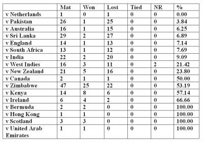 বাংলাদেশের ও.ডি.আই. রেকর্ড (সকল দেশের বিরুদ্ধে)