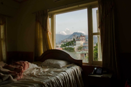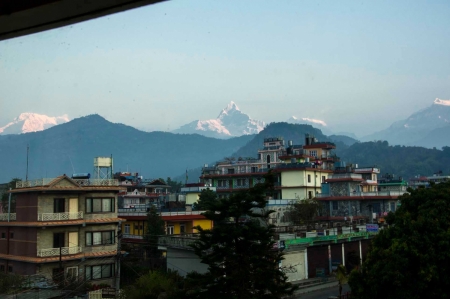 সকাল ৭ টায় বাস ছারবে কাঠমান্ডুর উদ্দেশ্যে, তাই ৬ টায় উঠে পড়লাম। উঠে জানালার দিকে তাকিয়েই দেখতে পেলাম অপূর্ব সুন্দর অন্নপূর্নার মাউন্ট ফিশটেইল এর চূরা। আমার জানালা থেকে এটা সরাসরি দেখা যায়।