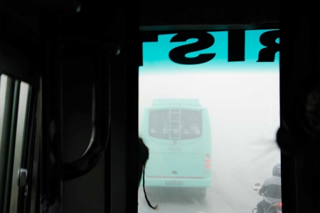কিছুদুর যাওয়ার পরেই প্রচন্ড কুয়াশায় সব কিছু অন্ধকার হয়ে গেল। ১ মিনিট আগেও কড়া রোদ ছিল, হঠাৎ করে এতো কুয়াশা দেখে ভয় পেয়ে গেলাম।