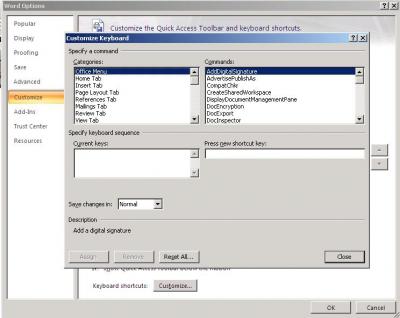 MS Word 2007 এর ক্ষেত্রে প্রায় সবই উপরের নিয়মে করতে হবে শুধু ১টা জিনিস ছাড়া। তা হল এখানে Customize Keyboard এর ঘর বের করার জন্য আপনাকে প্রথমে যেতে হবে অফিস বাটনের নিচে Word options এ, তারপর সেখান থেকে Customize বাটনে ক্লিক করে দেখুন একদম নিচের দিকে লেখা Keyboard shortcuts : [Customize...] এর [Customize...] এ ক্লিক করতে হবে।