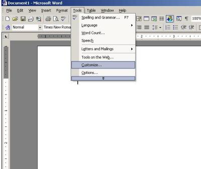 প্রথমে MS Word খুলে নিন্মে দেখানো চিত্রের মত Tools মেনু ক্লিক করে Customize এ ক্লিক করুন।