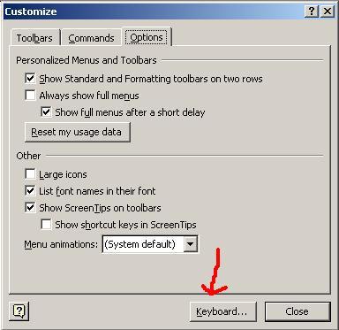 এরপর নিম্মে দেখানো এই Customize বক্স আসবে। এই বক্সের অপশন মেনুর নিচে থাকা Keyboard... এ ক্লিক করুন।