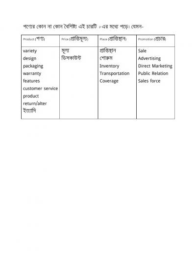 Convenience (সহজলভ্যতা) ( Place বা প্রাপ্তিস্থান ) – বাজারে যেকোন পণ্য launch করলে কাস্টমাররা যেন product টি বাজারে পায় , তা নিশ্চিত করতে হবে । যেমন – টিভিতে একটা জুস এর এড দেখাচ্ছে, আপনি একবার কিনলেন , আপনি আবার চাচ্ছেন কিনতে। যে দোকানেই যান, আপনি যদি জুসটি নিয়মিত না পান , তাহলে আপনি কয়দিন চাইবেন ঐ জুস আবারও কিনতে ?