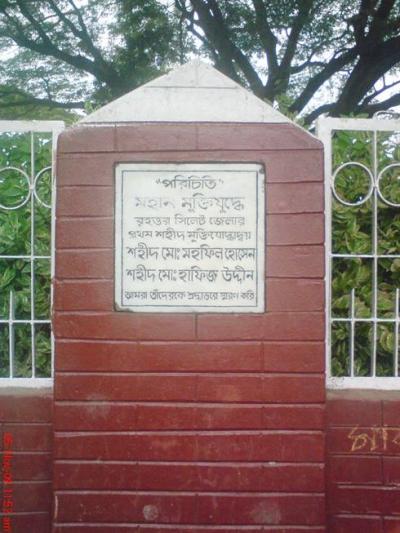 কৈফিয়ত: জোড়া কবরের নামফলকে “বৃহত্তর সিলেট জেলার প্রথম শহীদ মুক্তিযোদ্ধাদ্বয়” এই তথ্য দেখার পর আমার আগ্রহ তৈরি হয়। স্হানীয়ভাবে জানা যায় এই মুক্তিযোদ্ধাদ্বয় শহীদ হন শেরপুর-সাদীপুর যুদ্ধে। এরপর মুক্তিযুদ্ধের দলিল সংগ্রহ করলাম। সেখানে যুদ্ধের বর্ণনা থাকলেও সিআর দত্তের জবানীতে শহীদদের নাম ছিল না। আমি দলিলের বর্ণনার সাথে স্হানীয় সংগৃহীত তথ্য শুধু মিলিয়ে দিয়েছি। সবচেয়ে আশ্চর্যের বিষয় হচ্ছে বাংলাদেশ সরকারের মুক্তিযোদ্ধা বিষয়ক মন্ত্রণালয়ের ওয়েব সাইটে এই দু’জন শহীদের নাম খুঁজে পাওয়া যাবে না। অথচ হবিগঞ্জের জনগণ বিভিন্ন রাষ্ট্রীয় অনুষ্ঠানে রাষ্ট্রীয়ভাবে এই সমাধিতে ফুল দিয়ে শহীদদের শ্রদ্ধা জানান গভীরভাবে। আগামী ২৬শে মার্চে শ্রদ্ধা জানানোর জন্য ইতিমধ্যে সমাধি সাফসুতরো করে ফেলা হয়েছে। পোস্টের আরেকটি অসম্পূর্ণতা রয়ে গেছে। এই শহীদদের কোন ছবি আমি সংগ্রহ করতে পারিনি। স্হানীয় সংশ্লিষ্টদের সহায়তা চেয়েছিলাম। কিন্তু শেষ পর্যন্ত ফলাফল ইতিবাচক হয়নি।