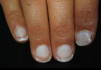 ফ্যাকাশে নখঃ কারো কারো নখের অগ্রভাগ মাত্রাতিরিক্ত ফ্যাকাশে হয়ে থাকে।