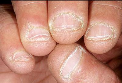 স্ফীত কিনারা বিশিষ্ট নখঃ কোনো কোনো নখের কিনারা মাঝে মাঝে স্ফীত ও লালচে হতে পারে।