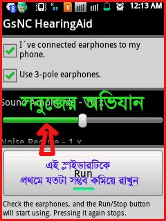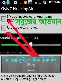 এবার আপনার কানে হেডফোন লাগান। প্রয়োজন অনুসারে আপনার মোবাইলের Volume এবং Sound Amplitude বাড়িয়ে কমিয়ে অ্যাডজাস্ট করে নিন। দেখুন আপনার কানে আস্তে শব্দও এই অ্যাপটি পৌঁছে দিচ্ছে।আসলে এটি বাইরের শব্দকে আপনার কানে অ্যামপ্লিফাই করে শোনায়। যে কাজটি করে থাকে Hearing Aids গুলো।