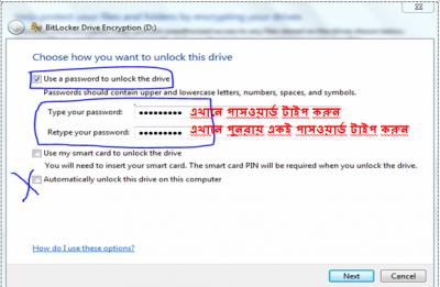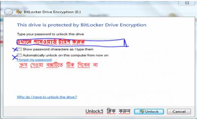কাজ শেষ হলে উক্ত ড্রাইভটি একটি তালার লোগো ধারণ করবে ড্রাউভটি খুলতে হলে My Computer এ প্রবেশ করে “তালার লোগো” চিহ্নিত ড্রাইভে ডাবল ক্লিক করুন নিচের স্কিন শটটির মতো একটি ডায়ালগ বক্স আসবে।