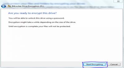 Start Encrypting এ ক্লিক করুন। আর কিছু করতে হবেনা এখন যা করার কম্পিউটার নিজেই করবে নিচের স্কিন শটটির মতো একটি ডায়ালগ বক্স আসবে।