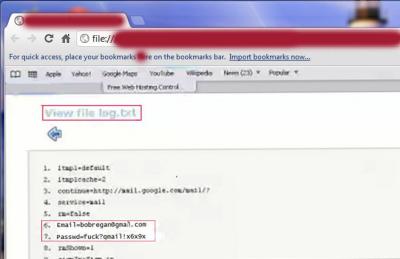 এখন আপনার সাইনআপকৃত ওয়েব একাউন্টের আপলোডকৃত "log.txt"নামক ফাইলটি ওপেন করুন…..কি দেখছেন…?? নিশ্চয়ই আপনার ভিকটিমের জিমেইল আই ডি এবং পাসওয়ার্ড তাই না…!!????