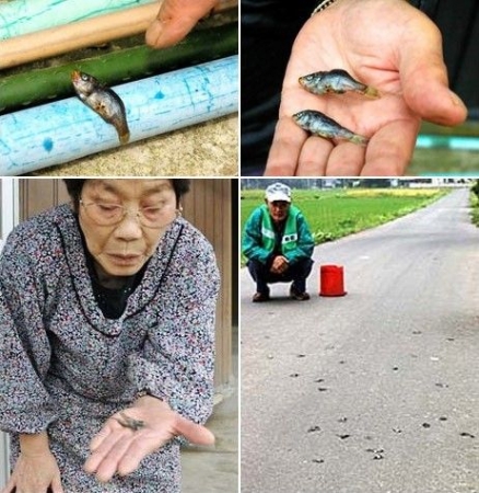 আকাশে নাকি ব্যাংও ওড়ে !!! ২০০৯ সালে জাপানের ইশিকাওয়াতে হল ব্যাঙ্গাচির এই বৃষ্টি । বিজ্ঞানিরা সমাধান দিলেন যে , শক্তিশালি মৌসুম-জলস্তম্ভ পানির সাথে সাথে টেনে নিয়েছিল এই ব্যাঙ্গাচির মত বস্তুগুলোকে ।