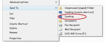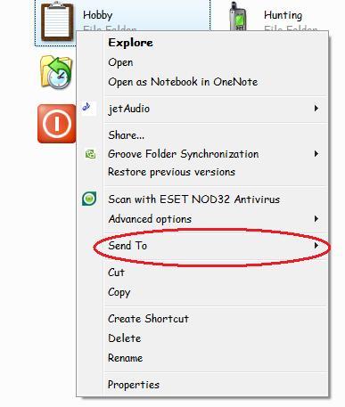 উইন্ডোজে যে কোন ফোল্ডারের উপ্রে ইন্দুরের (মাউসের) ডান বাটনে চাপা মারলে এক্টা মেনু ওপেন হয় । এতে সেন্ডটু নামে এক্টা অপশন থাকে ।