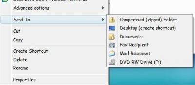 এই মেনু থেকে আপ্নি কোন ফোল্ডার বা ফাইল সরাসরি সেন্ড করতে পারেন । যেমন ইউএসবি ড্রাইভে । সেন্ডটু মেনুতে বাই ডিফল্ট কয়েকটা আইটেম দেওয়া থাকে ।