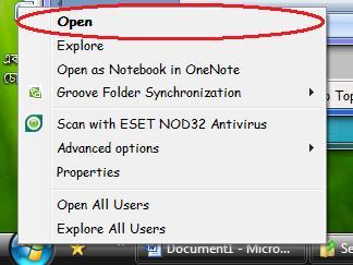 প্রথমে স্টার্ট বাটনে রাইট ক্লিক করে ওপেন সিলেক্ট করুন ।
