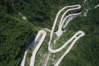 রাস্তাটি এমনভাবে উপরের দিকে উঠে গেছে যেন মনে হয় কোন উড়ন্ত ড্রাগন আর সেটা একটা জেড বেল্টের মত পাহাড়ের বিভিন্ন পাশ থেকে পাহাড়্গুলোকে পেচিয়ে ধরেছে।